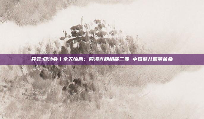 原标题:亚沙会丨全天综合:四海宾朋相聚三亚 中国健儿圆梦首金 责任编辑:曾少林
