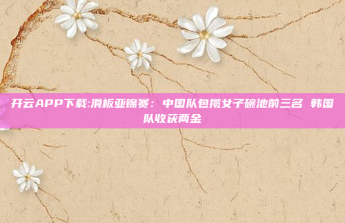 开云APP下载:滑板亚锦赛:中国队包揽女子碗池前三名 韩国队收获两金